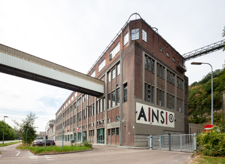 The packaging buildings were designed by architect Peutz and are partly constructed using half-timbered concrete and brick. The third floor of the concrete building dates from the 1950s. At the end of 2005, the RCE (Cultural Heritage Agency of the Netherlands) classified the buildings as worthy of national monument status. AINSI is located at the foot of St. Pietersberg and on the banks of the Meuse, about a 10-minute bike ride from the centre of Maastricht.