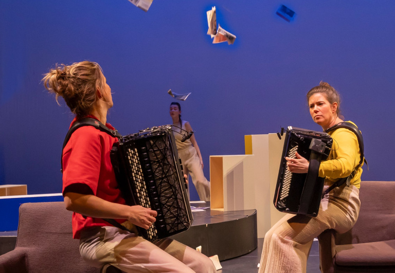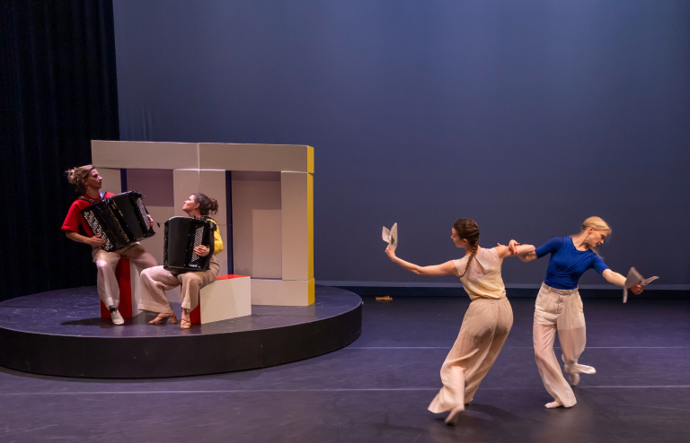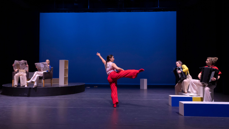 Op het podium staat een grote draaischijf met een boekenkast. Alles lijkt op orde tot iemand een boek doormidden scheurt en de wereld in beweging komt. Kastonderdelen vallen uit elkaar, boeken vliegen in het rond: de boel moet opnieuw worden opgebouwd. Maar doe je dat zoals het was, of verzin je iets totaal nieuws? Met energieke dans en livemuziek van accordeonduo TOEAC, neemt De Stilte kinderen én ouders mee in een fantasierijke, speelse wereld.