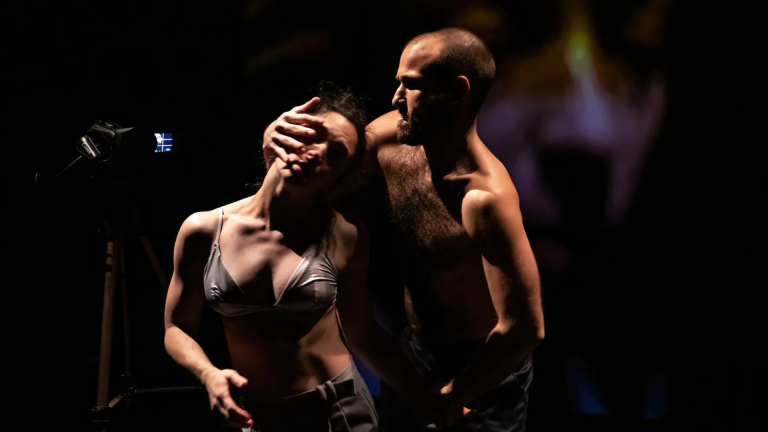 Quartet van het Sloveense dansgezelschap Mirabelka is een fysieke performance voor twee dansers en twee camera’s. Een onderzoek naar de innerlijke en uiterlijke architecturen van onze relaties. Terwijl de camera’s de bewegingen live volgen – als spiegel én voyeur – versterken en vervormen ze wat zichtbaar is en onthullen ze wat verborgen blijft. De choreografie wordt opgebouwd via reductie, duplicatie en montage. Beweging wordt teruggebracht tot de essentie van menselijke nabijheid: lopen, aanraken, kijken. Deze handelingen vormen de partituur van het kwartet, waarin zowel de blik van de dansers als die van de camera’s en van het publiek een cruciale rol speelt. Het spel ontstaat tussen tegen¬polen: genot en geweld, samenleven en vervreemding, lichaam en beeld. Vanuit verschillende perspectieven word je als toeschouwer uitgenodigd om het maakproces zelf te volgen.