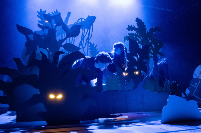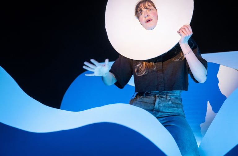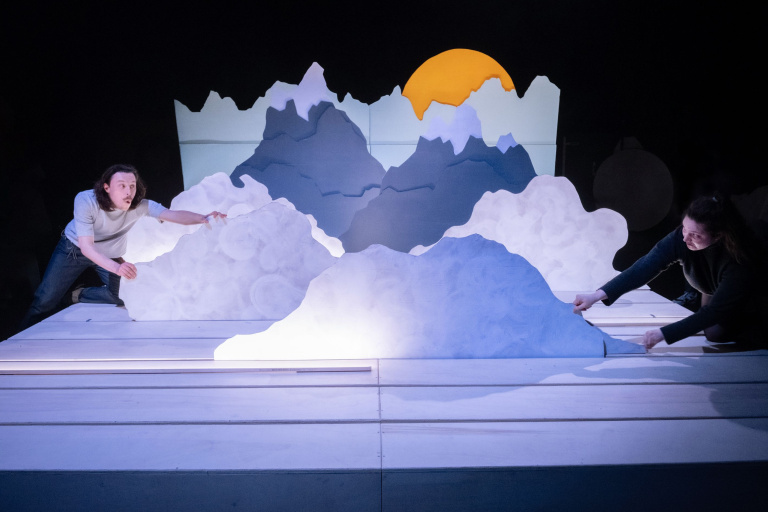 Sonja van Ojen en Hendrik Kegels van Collectief Plankton brengen een monumentaal verhaal over de voortdurende beweging van onze aarde, verteld in een enorm decor van kartonnen rivieren, wolken en bomen. Wouden kruipen over het podium, bergen verkruimelen tot stranden en de maan danst een walsje met de zee, terwijl een vierstemmig koor het geluid laat klinken van krakende rotsen en tsjilpende vogels.